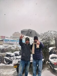 मसूरी। पर्यटन नगरी मसूरी में सीजन की पहली बर्फबारी होने से लोगों ने राहत की सांस ली है, लंबे इंतजार के बाद हुई बर्फबारी का जहां पर्यटक आनंद ले रहे हें वहीं व्यापारियों में भी खुशी का माहौल दिख रहा है।