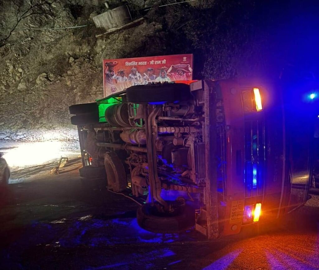 मध्य रात्रि को देहरादून मसूरी मार्ग पर पानी वाले बैंड पर एक ट्रक अनियंत्रित होकर पलटा।